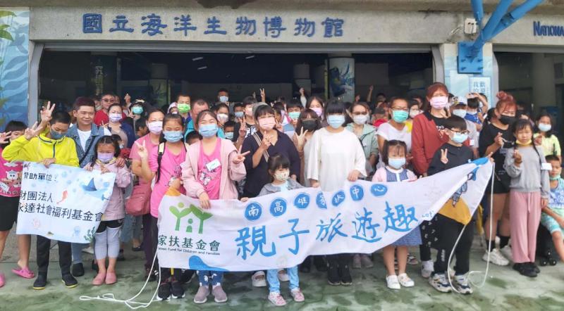 南高雄家扶中心主辦、財團法人永達社會福利基金會贊助屏東海洋生物博物館一日遊活動9月9日舉行,邀集157名扶助家庭親子參與,並在館內三大展區設計創意遊戲關卡及有獎徵答,大小朋友合作完成拍照任務,增進默契及互動情感。