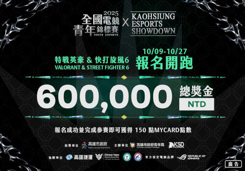 高市青年局、運動發展局主辦、高雄捷運、中華民國電子競技運動協會、樹德科技大學及正修科技大學協辦、ROG 玩家共和國贊助2025年第五屆「全國電競青年錦標賽 x KAOHSIUNG ESPORTS SHOWDOWN」,規劃《特戰英豪》、《快打旋風6》兩項目,總獎金60萬元,10月9日至27日開放各256隊報名,參賽選手可獲MyCard 150點。