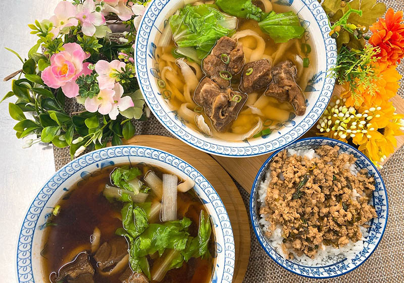 老顧客都說:「老闆娘一刀刀手工削出來的結實麵條、搭配以中藥燉煮卻鮮甜濃郁的紅燒湯頭,牛肉大塊真材實料,完美呈現獨一無二的好滋味。」不吃牛的客人則必點「刀削肉骨麵」,使用豬小排骨完全不油膩,搭上湯頭清爽無負擔更是恰到好處;OL最愛的「塔香肉醬飯/麵」,熱騰騰的主食上放滿加入大量九層塔與肉燥拌炒的肉醬,每一口都有滿滿九層塔與檸檬香氣,沒胃口的人也能大快朵頤。愛吃辣的朋友更不能錯過老闆娘以新鮮辣椒自製的純手工辣油,香辣氣味十足,加一點讓美味更上一層樓!