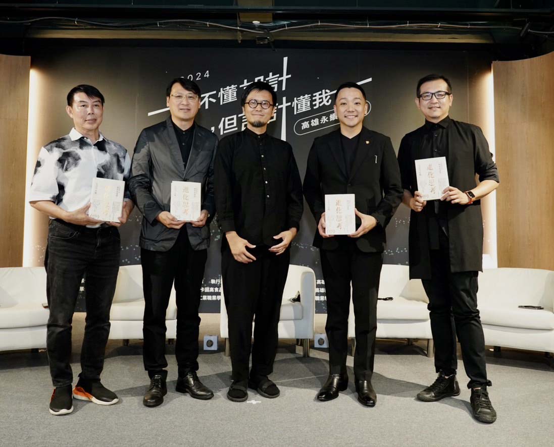 「我不懂設計,但設計懂我─高雄永續設計力」展8月16日至9月1日在Pinway駁二8號倉庫邀賞,規劃高雄品牌「廢物救星」攜手高科大創意產業系教授陳育民回收廢棄雞蛋籃、網球及木材等變身公共藝術「阡陌」、第13屆光陽設計挑戰盃(KDCC)競賽獲獎作品及高師大工業設計系、高科大工業設計系及樹科大生活產品設計系觀察生活用品、醫療救難、學習教具、生態環境等提出應對策略「生息」等主題展區,日本工業設計協會理事長、NOSIGNER創辦人太刀川英輔(圖一中)受邀主講「Saga Collective脫碳品牌平台」及「ADAPTMENT計畫」,暢談氣候變遷、城市治理、全球淨零風潮推動脫碳品牌平台,並與高市青年局長張以理(圖一右二)、中華民國工業設計協會理事長張漢寧(圖一右一)、台灣設計跨界交流協會理事長陳俊智(圖一左二)、國立高雄科技大學創新設計學院院長翟治平(圖一左一)等產官學代表探討設計力改變社會,同時串連中央與企業,協助在地產業落實永續。