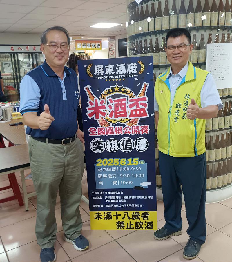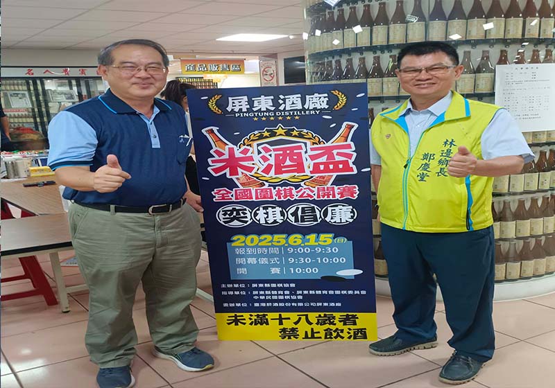 台灣菸酒屏東酒廠攜手屏東市體育會圍棋委員會6月15日合辦米酒盃圍棋賽,吸引幼兒園至高段棋園組逾300名選手同場競技,廠長張國棟(圖一左)、屏東縣林邊鄉長鄭慶堂(圖一右)、79歲三段高棋手曾連壁等人參與開幕式,張國棟說,下棋有助訓練從容待人接物,達標誠信、圓融、祥和境界。