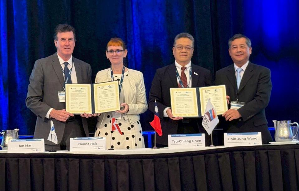 太平洋港口協會(Association of Pacific Ports)第111屆年會8月10至13日在加拿大納奈莫市舉行,主題定為「ONE OCEAN」,加拿大、美國、菲律賓、馬紹爾群島等地16處港口逾150名代表貴賓參與,臺灣高雄港務港務長陳祖强(圖一右一)8月11日與納奈莫港務局董事長Donna Hais(圖一左二)簽署合約,宣示高雄港與加拿大納奈莫港締結姊妹關係,成為高雄港第20處結盟夥伴,臺灣港務總經理王錦榮(圖一右二)、納奈莫港務局總經理Ian Marr(圖一左一)、加拿大交通部次長Arun Thangaraj(圖二右一)、納奈莫市市長Leonard Krog、駐溫哥華台北經濟文化辦事處處長劉立欣 (圖二右三)等人見證。