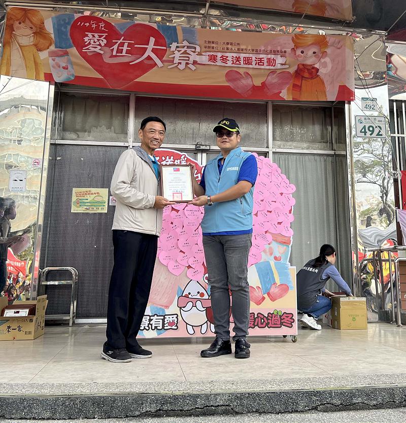 台灣中油煉製事業部「愛在大寮」睦鄰活動1月5日在高市大寮區公所舉行,行政室公關組經理陳志展(圖一右)率隊發放洗碗精、洗衣精等民生物資,賑濟弱勢家庭,陳志展說,持續努力傳遞溫情,期能帶動更多個人及企業響應回饋社會。大寮區長鍾炳光(圖一左)盛讚中油雪中送碳,也感謝慈善團體、善心人士等支持參與。圖/中油煉製事業部提供、文/高培德