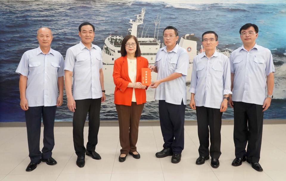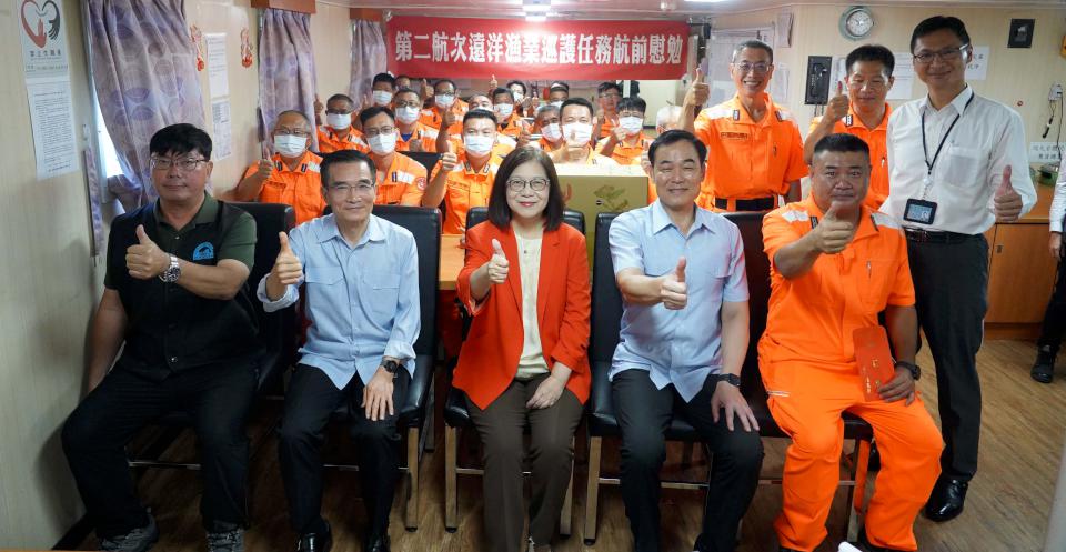 海巡署巡護九號2024年第2航次遠洋巡護任務前夕,海洋委員會主委管碧玲6月21日慰勉執勤人員,並提醒留意人船安全,平安返航。
