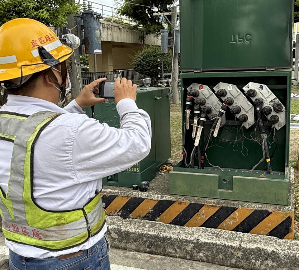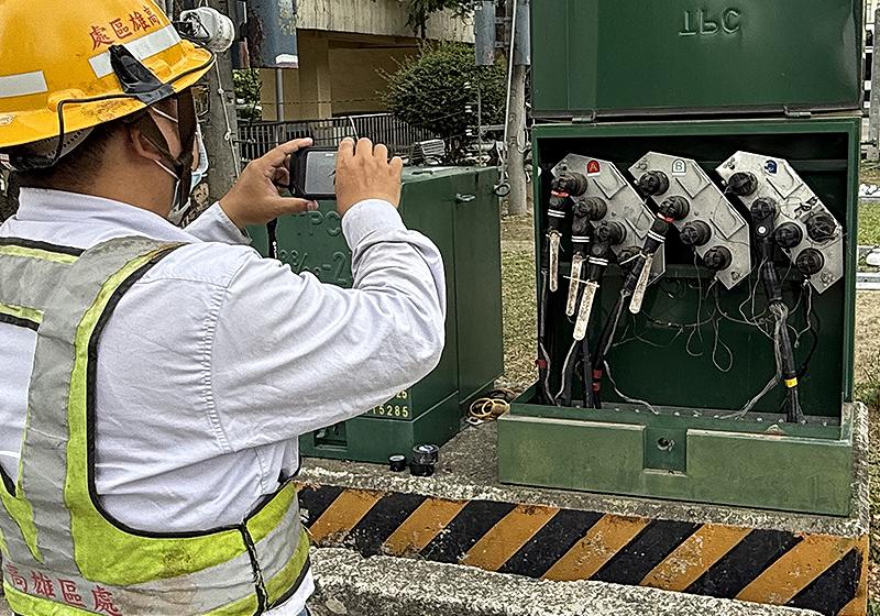 高雄區處追蹤並發函近2年曾淹水61處用戶配電室強化防災,鳳山區處加裝591處配電設備反光貼紙,並重新上漆1551具變壓器及1298支電桿。另採分階段施工縮短停電時間,配合部分公共建設及用戶需求遷移線路需花費逾6小時,籲請用戶晾察配合。圖/台電鳳山區處提供、文/高培德