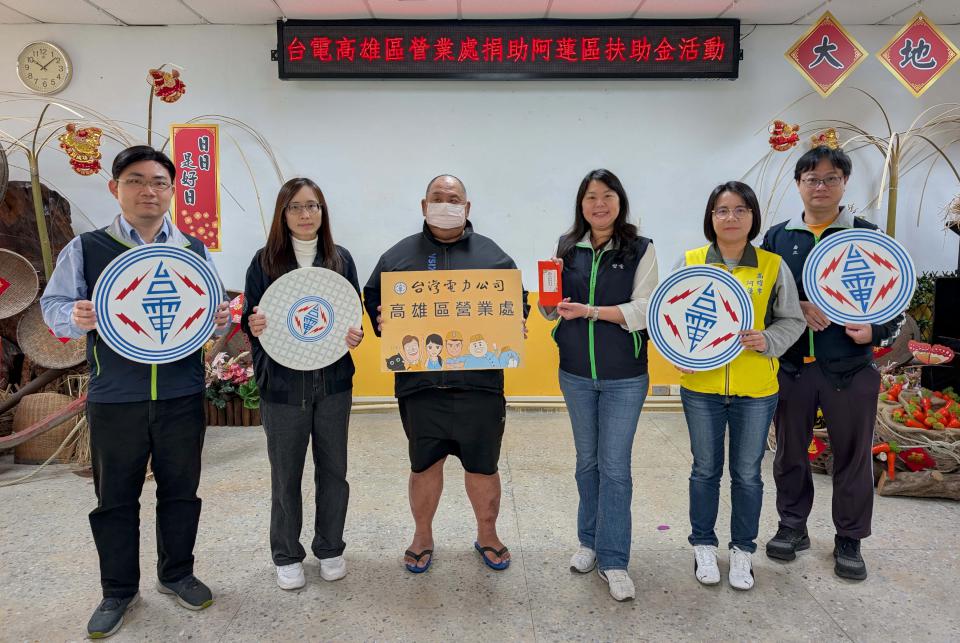 台電高雄區處業務副處長許佳玉(圖一左)2月10日領軍慰訪阿蓮區9名長者並致贈生活扶助金其中56歲許姓獨居男子患有心臟病、高血壓、氣喘等痼疾,無力負擔生活及就醫費用,他感謝台電認助,有能力添購要價近3萬元給氧機,緩解氣喘症狀。