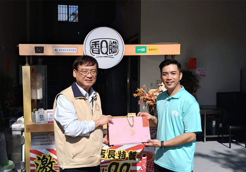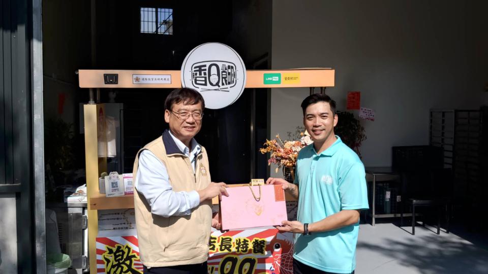 ▲劉雅魁處長(左)拜訪創業榮民群海實業有限公司執行長李明憲(右),為他加油打氣