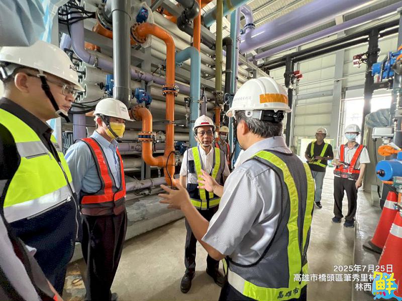 高雄市林副市長欽榮今(25)日,在水利局及經發局陪同下,視察橋頭再生水興建工程,實地了解目前工程進度。目前該工程進度已達98.19%,較原訂98.13%進度超前0.06%,各項工程已接近完工並辦理單體試車中,預計於今年9月辦理全廠試車,期許能如期如質於今(114)年底完工、並於115年正式啟動供水,為高雄市水資源永續發展再添重要里程碑。