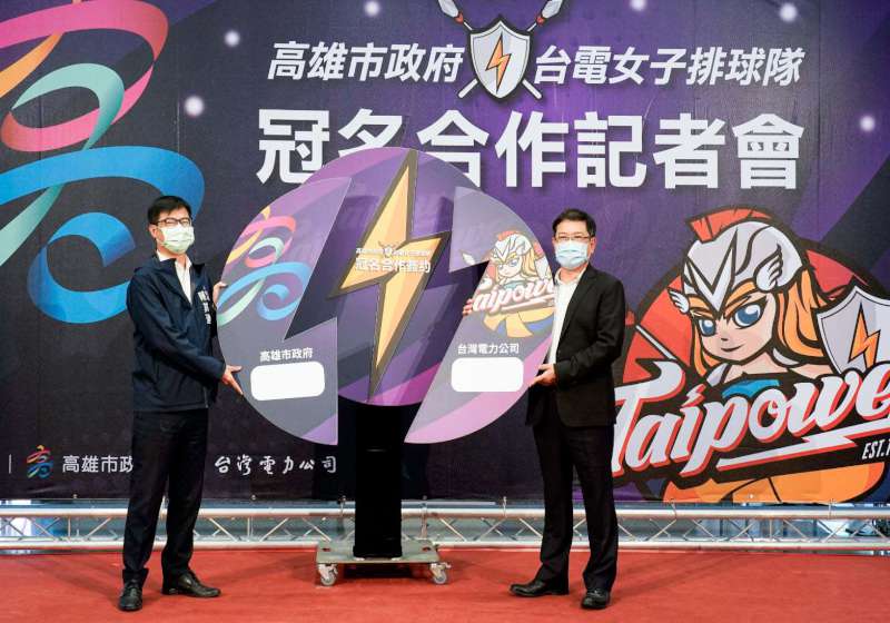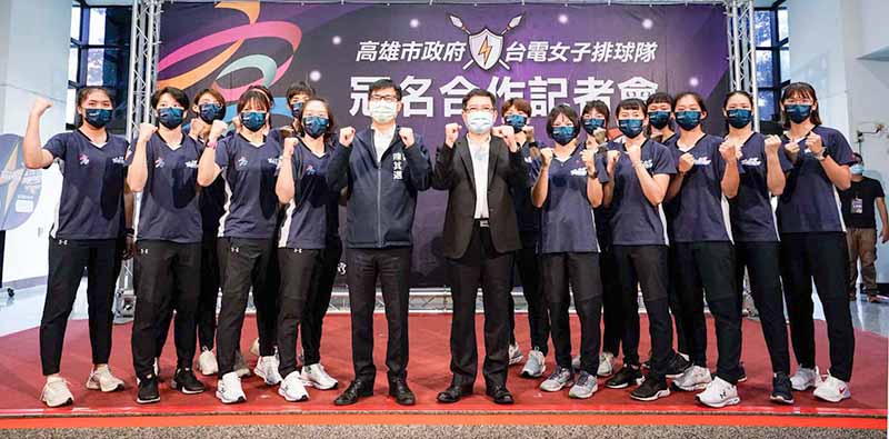 台電董事長楊偉甫(圖一右)、高雄市長陳其邁(圖一左)完成台電企業識別標誌閃電符號道具拼圖,歡喜宣布高雄台電女子排球隊正式冠名成軍,積極備戰110年10月企業17年甲級男女排球聯賽,挑戰例行賽10連霸紀錄,楊偉甫表示,台電女排2009年參與甲級聯賽,曾拿下例行及挑戰賽19次冠軍,感謝市府110年試辦運動科學輔助訓練計畫,長期支持體育發展,期盼攜手合作,提升女排隊整體戰績,形塑高雄成為國際運動城市。陳其邁表示,期盼藉由高雄台電女排隊傳承經驗、提攜後進,培育更多優質體育選手。