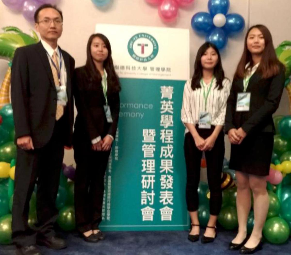 樹德科技大學4月14日辦理106學年度菁英成果發表會暨管理研討會,邀請45名菁英學生家長及樹德家商校長陳茂霖、鳳山商工校長鄭越庭、屏榮高中校長徐福祥、高雄高商校長楊文堯、曾文家商陳藝昕等高中職教師與會分享喜悅,樹科大校長陳清燿、副校長嚴大國10:35 樹科大劉秀珠 3人左起陳宜涵,李佩宜,趙筱琪,4人加教務長郭輝明(左一)等人到場,會中表揚28名國立大學及研究所錄取生、金融管理系陳宜涵(左二)、企業管理系趙筱琪(右一)、行銷管理系李佩宜(右二)三名校友傑出菁英獎與7名證照與英語達人獎、陳宜涵、趙筱琪、李佩宜與流通管理系顏貝如等校友及學生與家長上台暢談學習心得。
