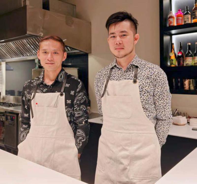 任職米其林二星日本料理餐廳期間,李宥均練就細微觀察與掌控能力,110年在合夥人郭立民(圖一左)鼓勵下返鄉開店創業,店內僅6席座位、沒有菜單、接受2人以下預定,期能營造舒適用餐氛圍。