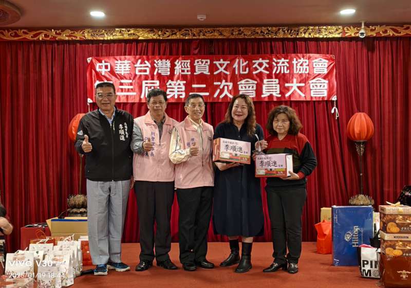 中華台灣經貿文化交流協會第3屆第2次會員大會暨春節聯誼活動1月19日舉行,現場席開15桌,高市議員陳玫娟、李順進誌慶祝賀,理事長趙文彬說,協會2018年9月8日成立,感謝顧問、理監事及會員支持,協助會務穩健發展,2025年續推經貿文化交流與公益活動,期能發揮更大影響力。
