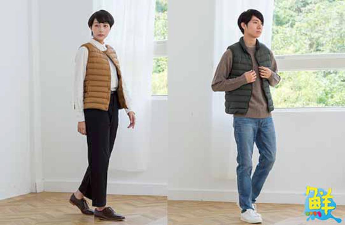 ▲女輕量澳洲羽絨可攜式無領背心,1,390元;男輕量澳洲羽絨可攜式立領背心,1,590元。