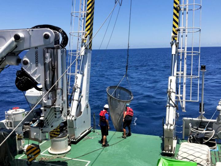 洪慶章表示,「新海研3號」首航主要研究證實颱風扮演南海海洋食物鏈角色,颱風壟罩海域水深至少1000公尺,因氣溫炎熱導致海水分層,不利浮游生物覓食,過去多數研究透過衛星看海面藻類濃度,幾乎不見海洋生物身影,透過研究船動態定位系統讓船靜止,確保採樣準確度。