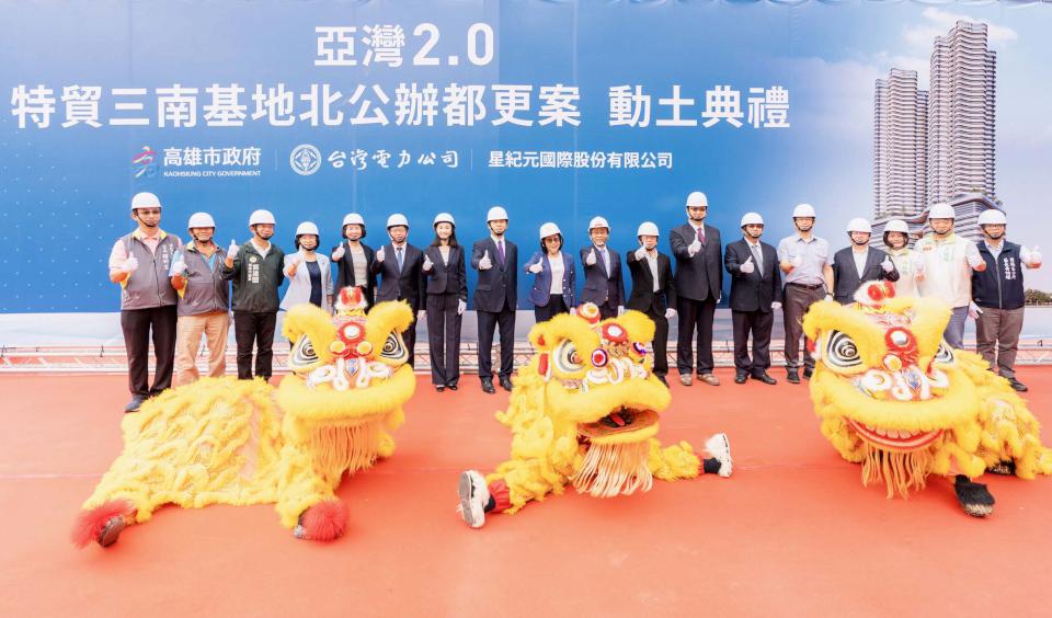 高市都發局亞灣2.0特貿三南基地北公辦都更案9月30日在成功二路、林森三路口動土,副市長林欽榮、星紀元國際董事長林子寬、都發局長吳文彥、地政局長陳冠福、高市議會議長康裕成、國揚漢來集團創辦人侯西峰、執行長侯嘉麒、等人上香參拜並手持金鏟鏟土,祈願工程如期如質完成,預計120年底前陸續完工。