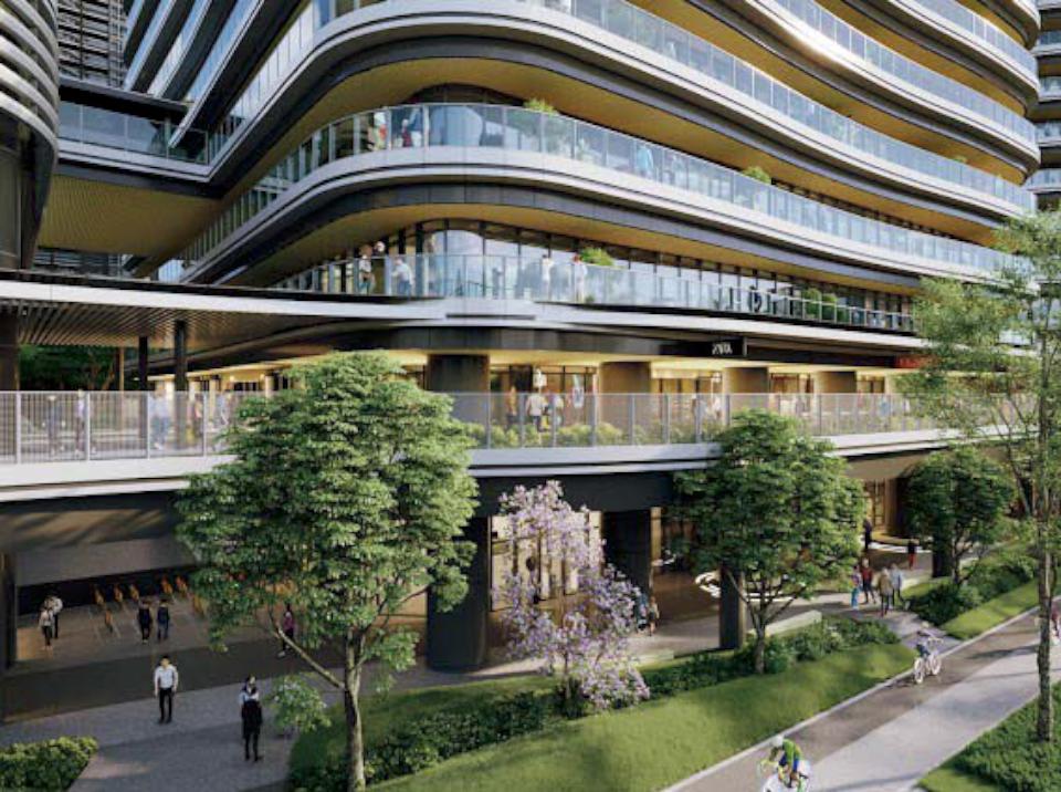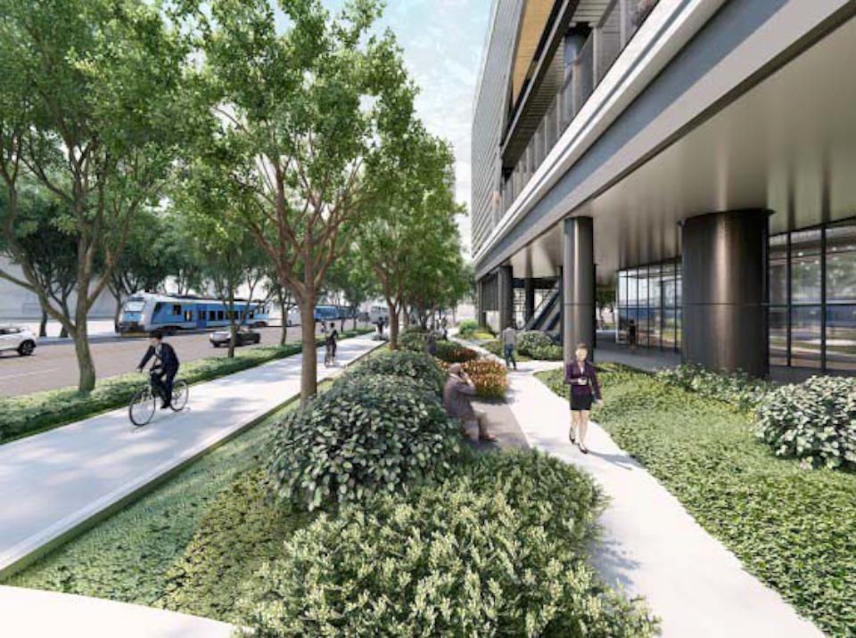 C棟打造466坪5G創意交流中心,並設置共享空間及大型公共健身中心,可望取得黃金級智慧建築與銀級綠建築標章,建蔽率59.95%、綠覆率逾75.8%,並捐贈3組公共自行車,基地路口占地約181坪街角廣場,成功二路退縮10公尺,串連南基地綠化人行道及自行車道,再經由立體廊道連結南北基地。圖/都發局提供、文/高培德