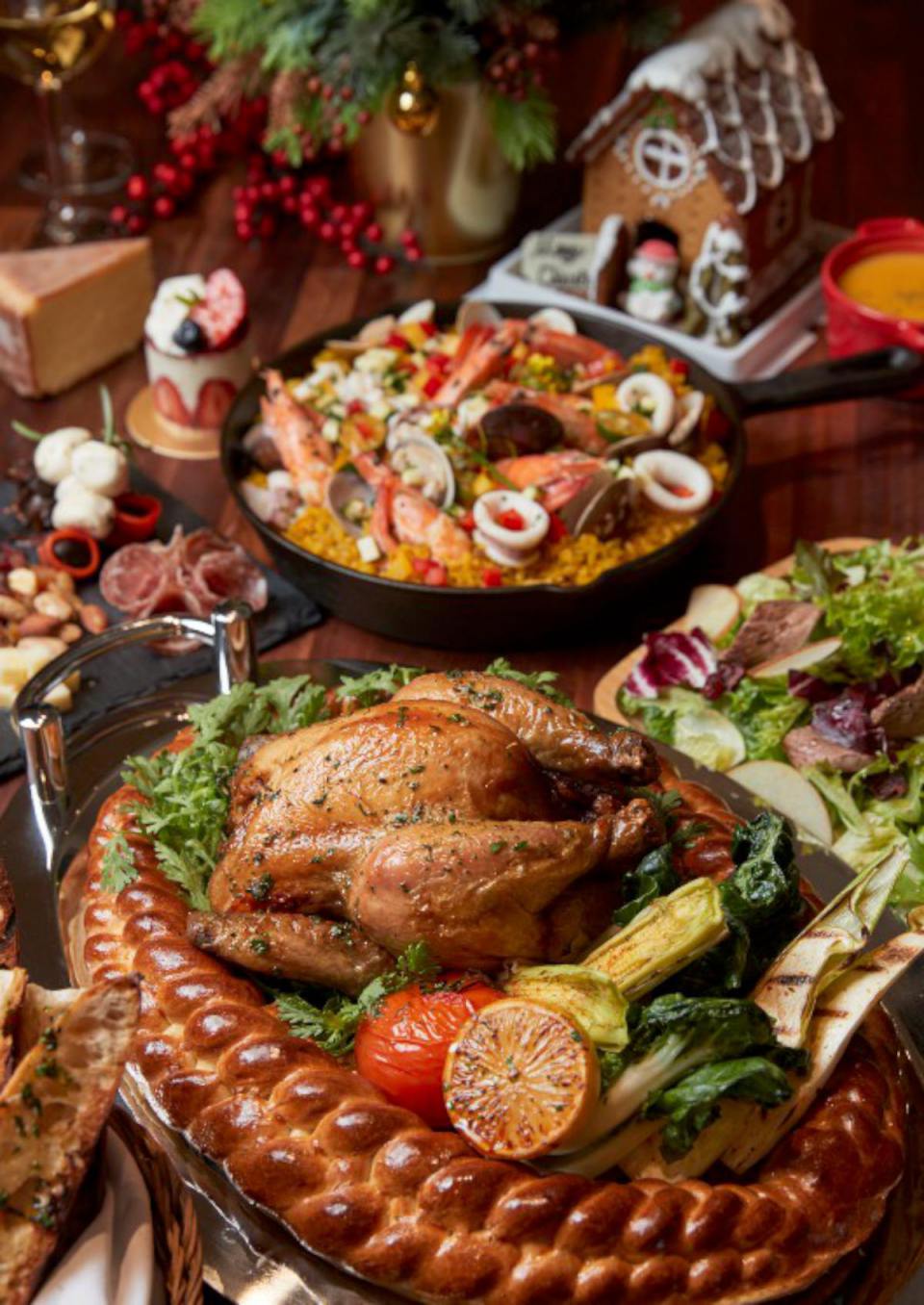 奇可小廚今年特別推出聖誕節必吃「聖誕跨年烤雞大餐(約四~五人份)」,以熱賣的「聖誕烤雞」為主打,並由今年新加入奇可烘焙團隊的日本資深烘焙職人奈良野由美特別為烤雞量身打造的精緻麵包編織底籃,搭配烤雞留下的美味湯汁,結合出豐富有層次的口味,兼具視覺與味覺的饗宴。西班牙海鮮燉飯,嚴選台東關山米為基底、再以主廚特製辣肉腸添加風味,加入高湯與貝殼類一起拌烤,呈現出山與海交織的獨家風味。綜合起司盤,特別選用 pamiggiano24個月硬質起司和Asiago半軟質起司、油漬水牛起司搭配義製潘切達、米蘭2種冷肉以及伊比利風乾火腿與牛奶棒、綜合堅果等等,濃郁起司滋味搭配各式配料,讓人心情不自覺沉浸在歐式花園中,滿足於身心靈的愉悅體驗。
