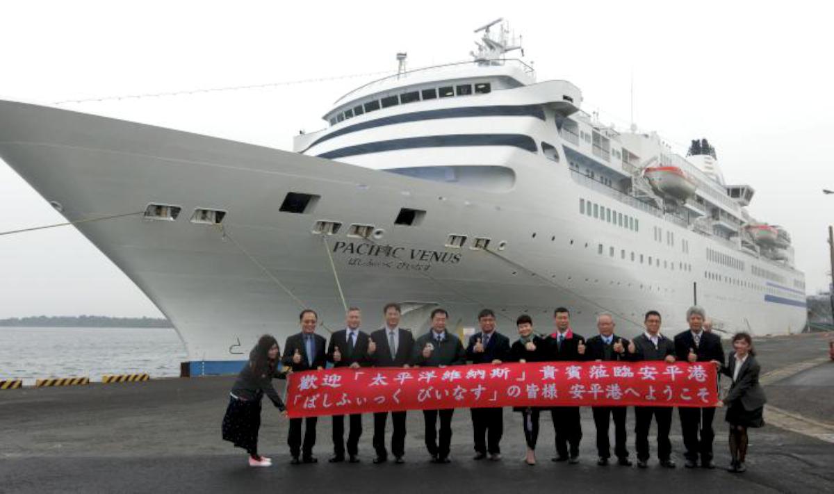 延續2018年卡莉多麗號郵輪首航,日本籍郵輪太平洋維納斯號(PACIFIC VENUS)1月21日搭載近400名日本銀髮族抵達台南安平港5號碼頭泊靠,展開台南古都文化旅程,高雄港務總經理陳劭良、台南市長黃偉哲致贈首航紀念牌,並邀請大唐民族舞團獻藝歡喜迎賓。團員預計參訪赤崁樓、孔子廟、延平郡王祠、安平古堡、八田與一紀念公園、烏山頭水庫等特色景點。