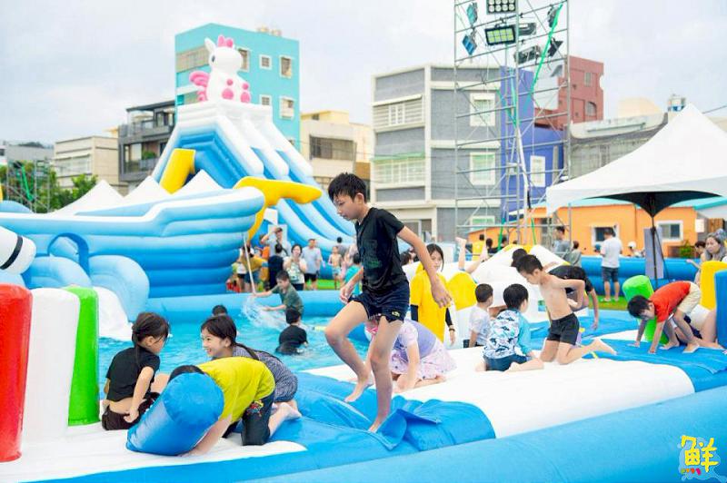▲氣墊水樂園7月26日率先登場,小朋友玩得不亦樂乎