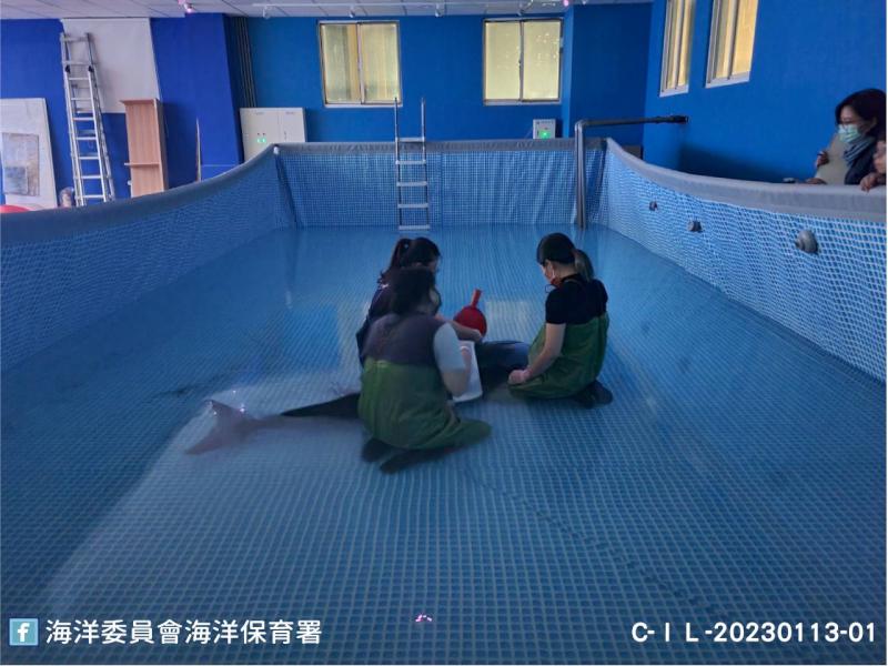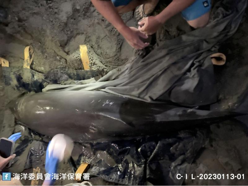 宜蘭縣岳明沙灘1月13日下午3點50分左右傳出長165公分雌性幼體侏儒抹香鯨擱淺,海洋保育署海保救援網獲報會同海巡署第一巡防區、宜縣府農業處、動植物防疫所、中華鯨豚協會、台大獸醫團隊、海保署宜蘭保育工作站等單位馳援,晚上8點55分運抵基隆八斗子岸置中心照護, 1月14日上午5點52分順利野放。圖/海保署提供、文/高培德