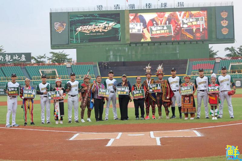 ▲昨(23)日,台鋼雄鷹與七位原民運動好手,在澄清湖棒球場舉行開球儀式。