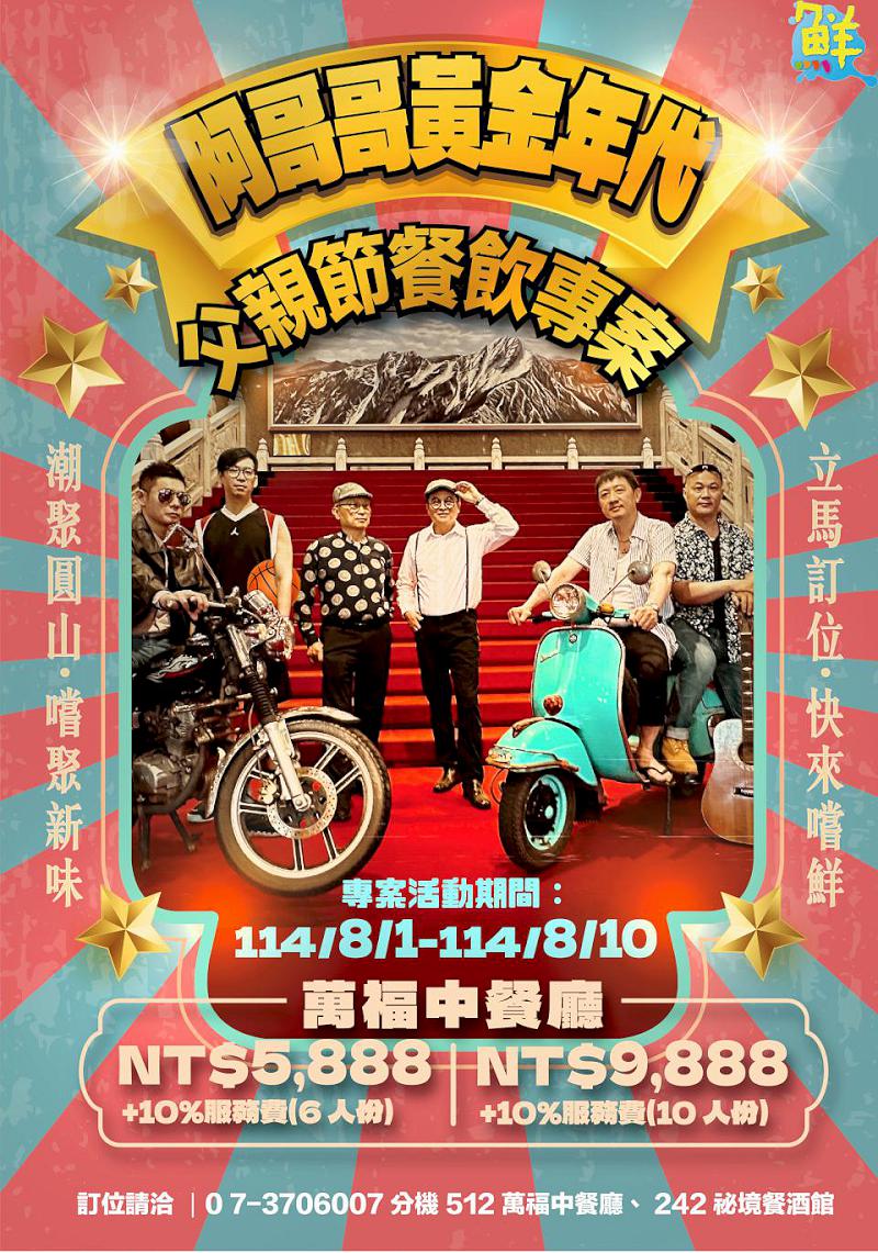 ▲高雄圓山大飯店阿哥哥的黃金年代-父親節餐飲專案(圖/高雄圓山大飯店提供)