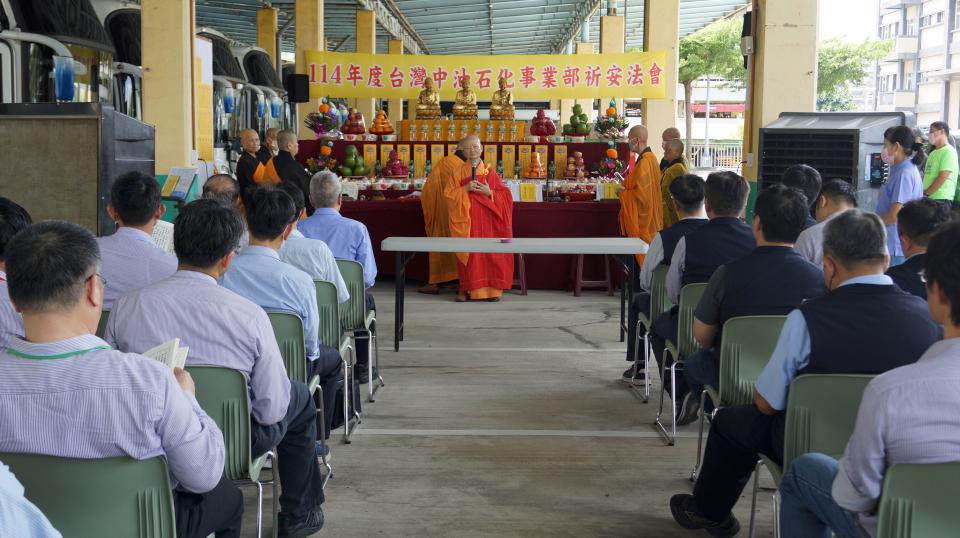 台灣中油石化事業部9月4日舉行114年中元普渡祈安法會,現場敬備鮮花、素果、米糧、罐頭、素粽與糕點等供品,並設置往生壇與普施壇,林園區普願寺淨音法師主持誦經,石化事業部執行長黃三泰、副執行長何信杰、吳祐明、廠長謝旻志等人參與獻花禮拜、梵音灑淨,祈願營運順利、工廠操作安全、員工與鄉親身心安康、心靈充實。