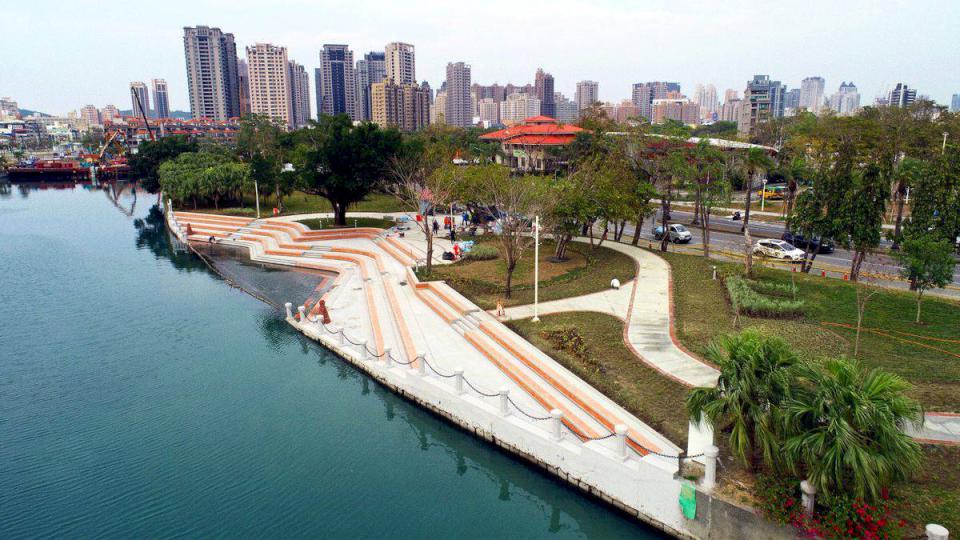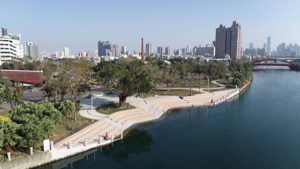 高雄市首座愛河階梯護岸工程正式完工,以提升防洪安全為核心,同時融入壽山景觀元素與在地文化歷史,打造自然景觀與城市共融的水岸遊憩空間,農曆過年歡迎市民朋友們相邀漫步愛河。