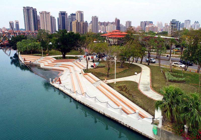 水利局表示,愛河階梯護岸工程以「自然共融」為設計理念,將壽山地貌、愛河水景與地方文化巧妙結合,打造一處既安全又具親水空間,其中不僅包含特色步道、地景廣場、既有老樹保留、地方文化歷史結合與環保永續設計,更提供市民親水遊憩空間,成為愛河水岸的新亮點。