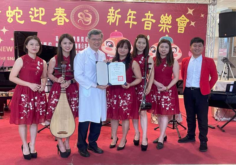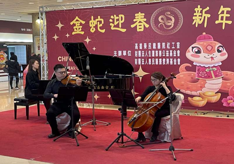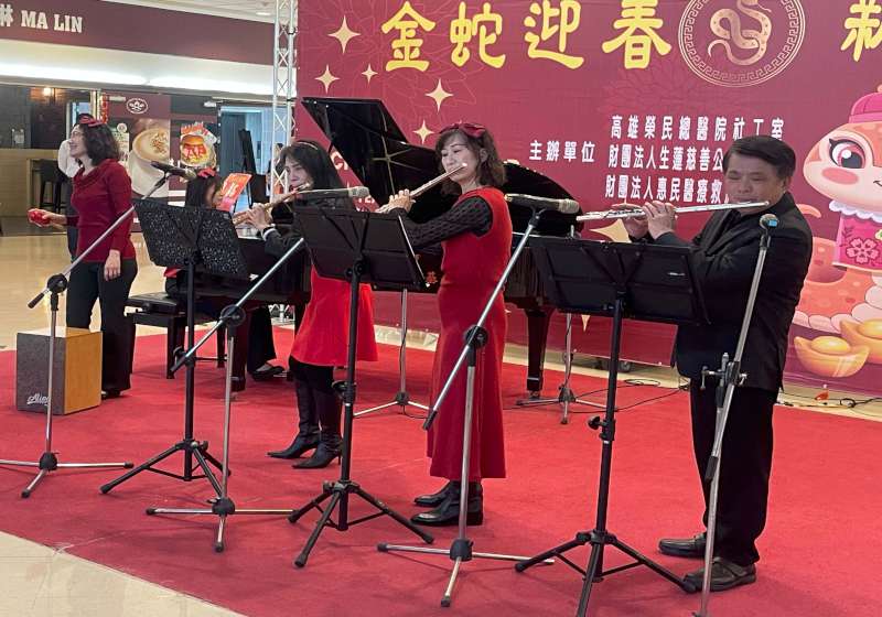 高雄榮總1月14日與財團法人生蓮慈善公益基金會、財團法人惠民醫療救濟基金會合辦「金蛇迎春—新年音樂會」,安排魔笛家族長笛、木笛及鋼琴合奏、謠旅室內樂團小提琴、大提琴、鋼琴三重奏、響豔樂坊與榮華幼兒園國樂合奏及歌舞等精彩表演,期能紓解病友、家屬不安情緒,同時慰勉醫護人員辛勞,院長陳金順說,感謝生蓮慈善基金會董事洪千惠、執祕陳培城等人大力支持。社工室主任曾耀毅說,期能透過悠揚樂聲及互動舞蹈演出,陪伴病友、家屬感受溫情。圖/高榮提供、文/高培德