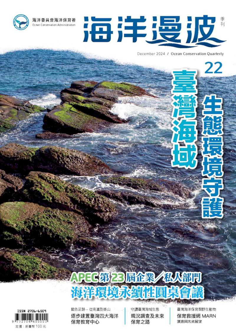 海洋委員會海洋保育署第22期海洋漫波季刊12月31日發行,國際廣角鏡專文分享亞太經濟合作體(APEC)第23屆圓桌會議,8國專家學者齊聚商討海洋保護衝擊經濟韌性、介紹台灣海域生態環境守護計畫中重要成果,未來續推藍色經濟,促進經濟發展與生態平衡。