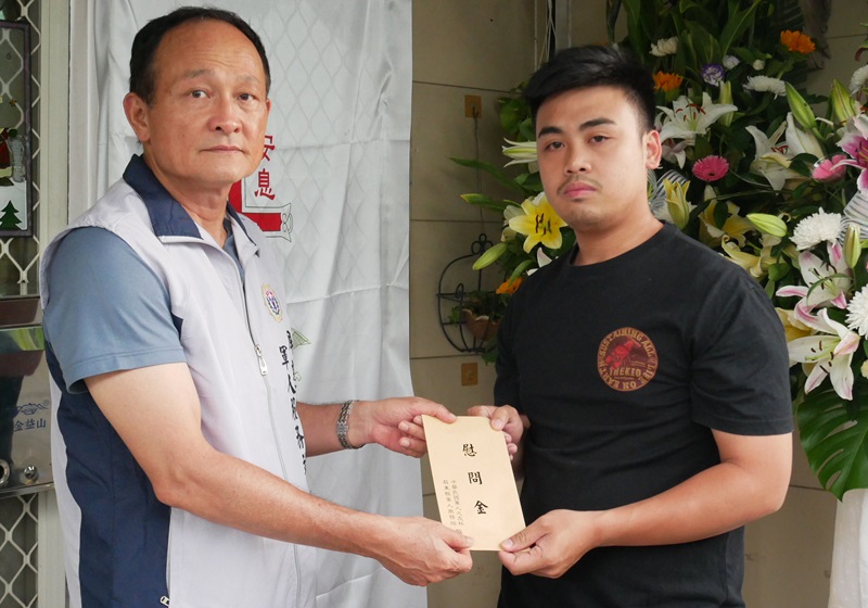 海軍武夷軍艦金下士父親日前因故辭世,軍友保險公司總經理黃秀芬得知後協助辦理慰助事宜,屏東縣軍人服務站專員袁光武今(9)日前往金父靈前弔唁,並代表軍友保險公司總經理黃秀芬致送慰問金,表達深切地哀悼與不捨。