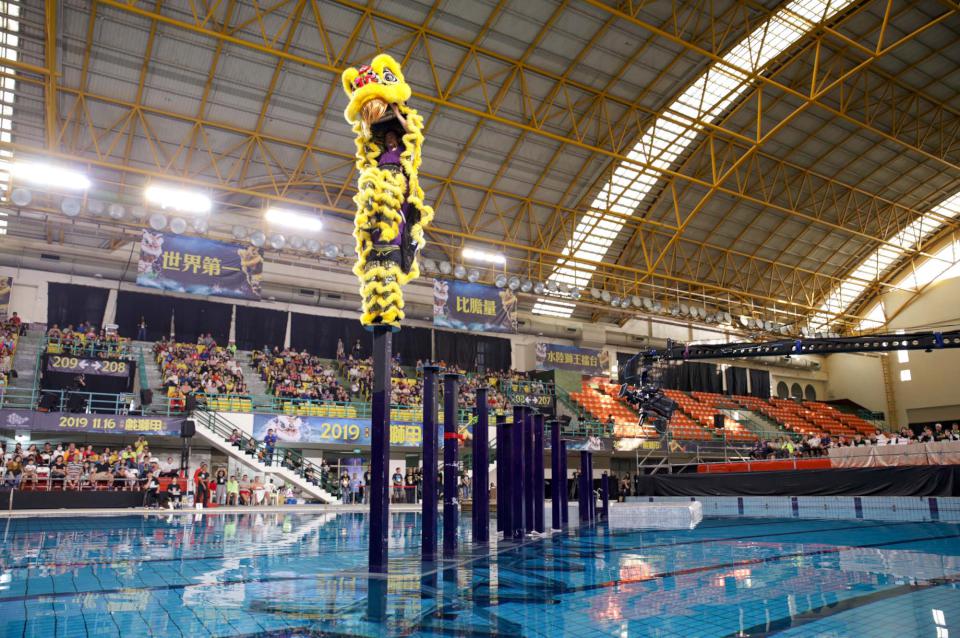 「水上跳」午、晚場11月15日在高市國際泳池舉行,傑出演藝團隊妙璇舞蹈團新作「水族旱船、虎爺鎮煞」,中華民國水上芭蕾舞協會首次受邀獻藝,11月16日齊聚高雄巨蛋挑戰陸樁「空中躍」,高市左營洲仔清水宮十八衙役武術藝陣、世界舞龍冠軍王功兩廣國術龍獅戰鼓團競技夜光龍獅秀接力炒熱氣氛,更多訊息可上賽事官方社群查詢。圖/高史博提供、文/高培德