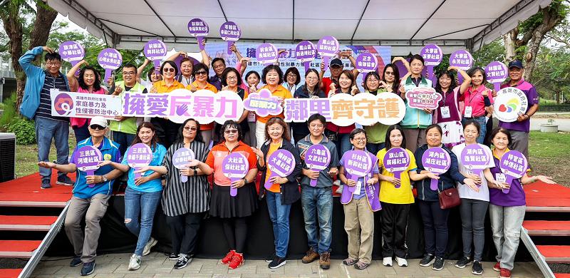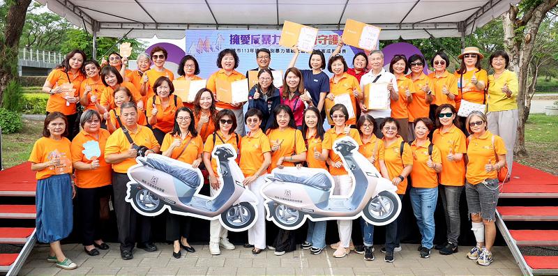高市社會局家庭暴力及性侵害防治中心11月23日在衛武營都會公園辦理113年度國際終止婦女受暴日宣導暨建構性別暴力領航社區服務方案成果發表活動,主題定為「擁愛反暴力鄰里齊守護」,30個防暴社區透過動靜態方式展現宣導成果,同步表揚表揚5名優良防暴宣講師,國際崇她高雄社、高雄育萱社邀集8個善心企業組織捐贈10台保護救援服務電動機車,強化社工服務量能,社會局長蔡宛芬說,感謝各社區發揮創意,透過戲劇、舞蹈、遊戲等方式宣導家防重要。