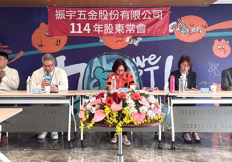 振宇五金5月28日召開 114 年股東常會,董事長曾善主持,總經理洪國展簡報113年營運績效,會中承認 113 年度營業報告書及財務報表,同時通過盈餘分配案、限制員工權利新股發行案及盈餘轉增資發行新股案,展現企業永續經營決心。
