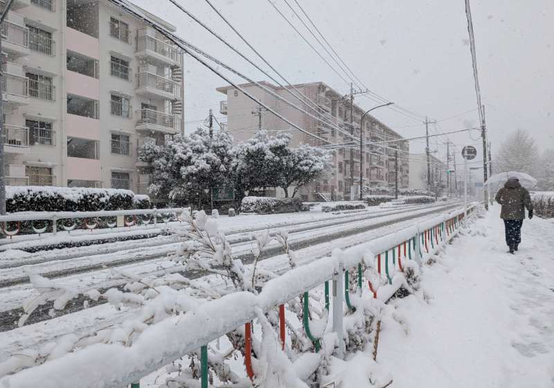 神奈川、東京的雪,和東北那種乾爽的雪不一樣,水氣很重。常說「下雨路滑」,其實「下雪更滑」。雪被人踩過、壓實之後,表面結成透明的冰,非常滑,真的一不注意就會整個人滑出去。
