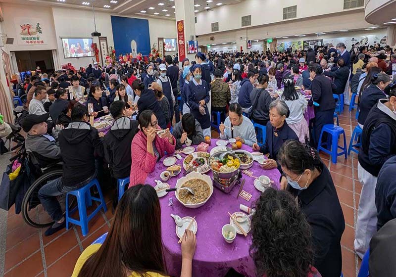 慈濟基金會高雄分會115年冬令發放暨歲末圍爐活動2月7日及8日在高雄與鳳山靜思堂舉行,兩地席開158 桌,宴請500戶家庭成員與志工,慈濟基金會公傳鄭楊慶說,活動陪伴受助對象提前歡度春節,志工凌晨開始備餐,端出蔬食家佳餚、暖心火鍋、及象徵平安蘋果與吉祥橘子,色香味聚全,暖胃同時體現溫情關懷。