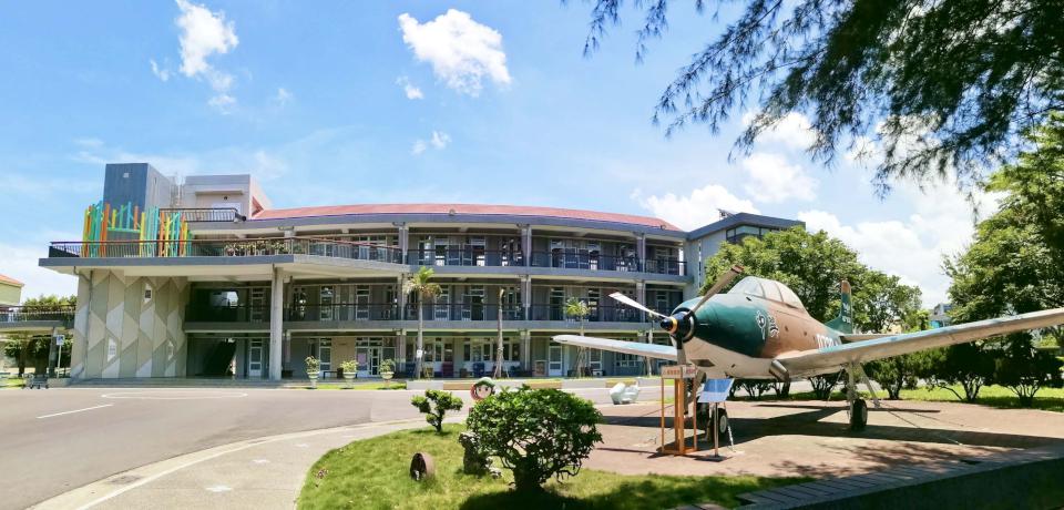 校舍外觀融入飛機堡壘意象,並設置大型螺旋槳,強化航空主題特色,宛如縮小版航教園區,校長陳麗玉說,期能潛移默化培養學生科學、工程及國防議題興趣。