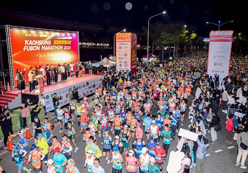 高市運動發展局主辦、富邦人壽冠名贊助2026高雄富邦馬拉松1月11日續在高雄國家體育場舉行,高市副市長李懷仁、富邦人壽資深副總陳寬偉、運動發展局局長侯尊堯、贊助商兼執行單位永悅健康董事長陳俊嘉、營運長杜君哲、活動代言人中華職棒台鋼雄鷹啦啦隊女神Mingo朴旻曙、旅日高市長跑選手簡子傑、仙台市育英高校教練安藤拓也、友好城市秋田縣仙北市市役所市長田口知明、熊本縣熊本市經濟觀光局局長黒木善一、札幌市運動局運動城市推進部部長中田稔、千葉縣千葉東京灣跨海大橋馬拉松執行委員會祕書處副祕書長島津政男、北九州市城市品牌創造局運動部部長山根英明、館山市稅務課佐久間大輔、高市府市政顧問張泰源、阮綜合醫院醫師蕭偉成等人鳴槍宣布起跑、侯尊堯、朴旻曙、教育局長吳立森等人挑戰人生首場半馬賽事,高市副市長李懷仁說,透過賽事行銷城市,巡禮在地美景、品嘗美食及感受市民熱情,侯尊堯說,期能續推馬拉松文化,紮根慢跑運動風氣。