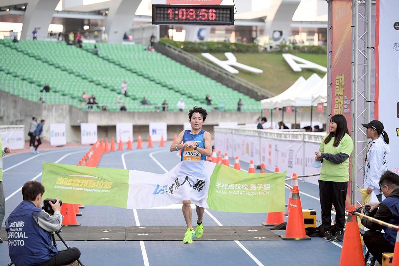 1小時8分55秒半馬男子組封王日本選手久田淳司(圖七)就讀醫學相關科系,他說,平常利用社團時間訓練,高市氣溫適合跑步,藉由參賽順訪高雄,1小時23分8秒勇奪女子組冠軍享譽不死鳥高市選手謝千鶴(圖八)說,結束台北馬拉松只休息一天,不幸罹患腸胃炎修養多日,回程返抵國體場感覺很棒。