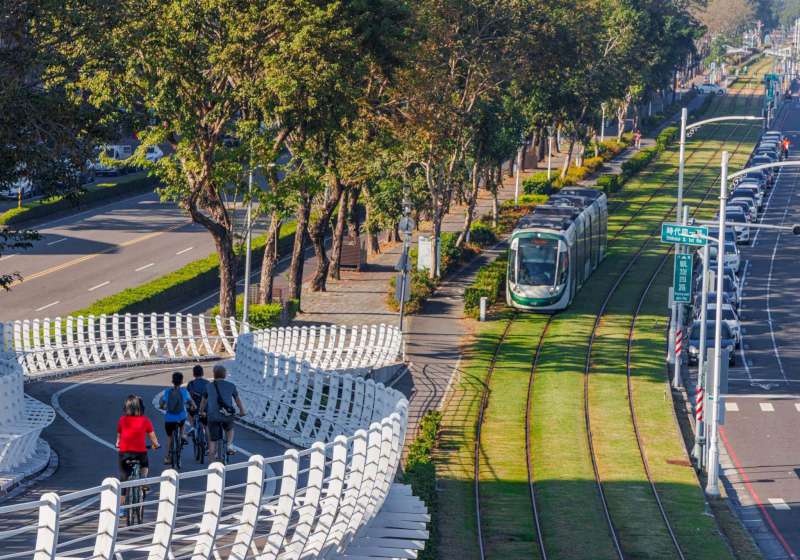 通學人次成長15%、就醫成長20%、觀光遊憩增加5%,捷運局長吳嘉昌說,獲獎主題完美結合軌道建設與城市美學,輕軌特殊草皮管道,型塑綠色動脈與獨特移動地標,列車與車站採全齡友善設計,滿足通勤、上學、就醫等需求。圖/捷運局提供、文/高培德