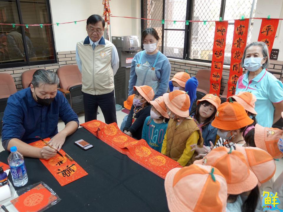 榮服處處長劉雅魁首先感謝兩位老師願意持續鼎力支持本活動,嘉惠榮民眷、增添喜氣。另外也感謝鳳山辦公室二樓教保服務中心邱主任,帶領幼保老師與幼童們熱情參與,現場充滿著歡樂和濃濃年味,活動順利圓滿成功。
