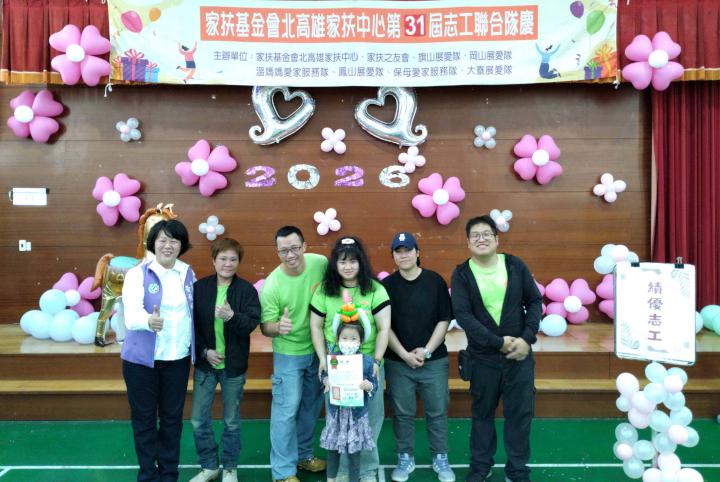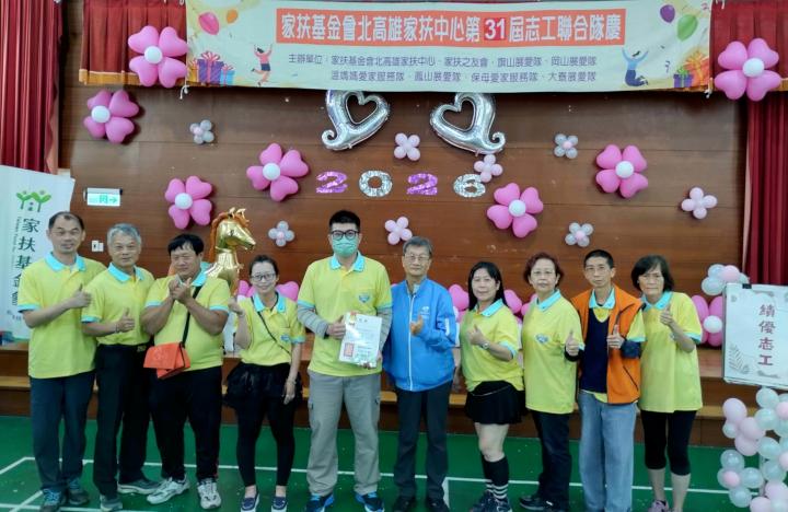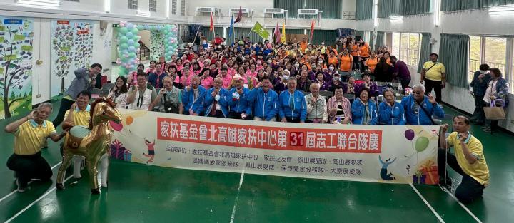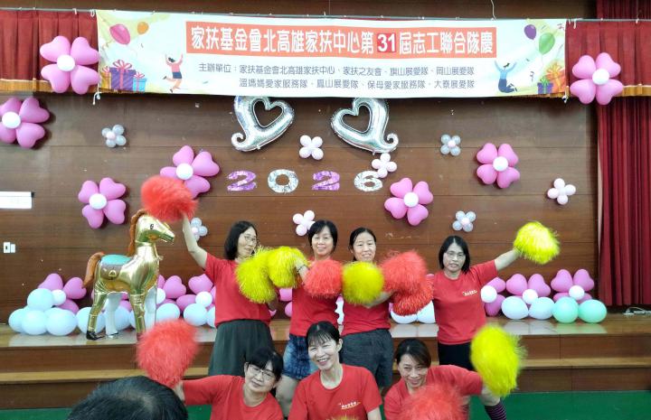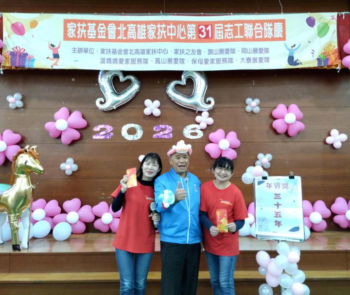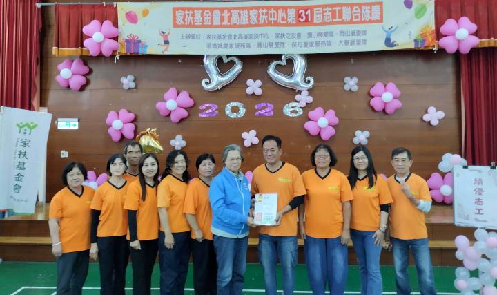 北高雄家扶中心1月18日舉行第31屆志工聯合隊慶暨表揚活動,7志工隊登台獻藝,並穿插趣味活動及慶生儀式,中心主任吳瑞華表揚服務滿3年3人、5年4人、10年3人、15年8人、20年4人、25年9人 、30年2人、35年2人年資獎及年度績優人員、服務滿500小時高市志願服務金銀銅質獎9人、滿1500小時衛生福利志願服務金銀銅質獎6人、滿3000小時全國志願服務銀銅質獎1名人等得主。