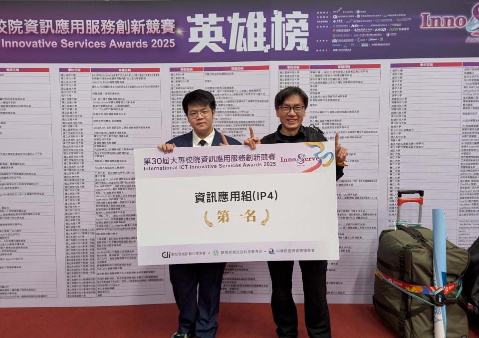 第30屆大專校院資訊應用服務創新賽 正修科大資管系碩士生陳柏翔奪冠