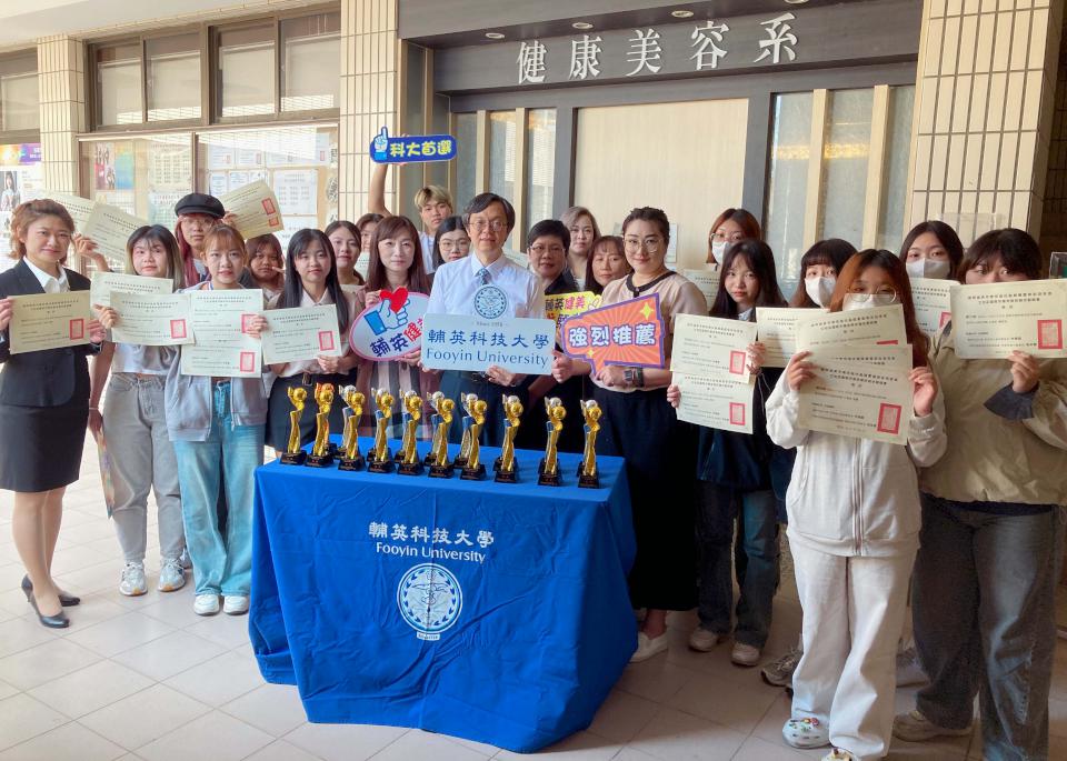 「有金牌老師就能培養出金牌選手」校長林惠賢說,樂見柯美華、教師黃曉玲等人身先士卒,透過參賽教學相長,醫學檢驗生物技術系學生湯沂靜囊括大專組單根式睫毛美睫嫁接、熱蠟除毛雙冠王、熱蠟除毛亞軍、身體按摩季軍。