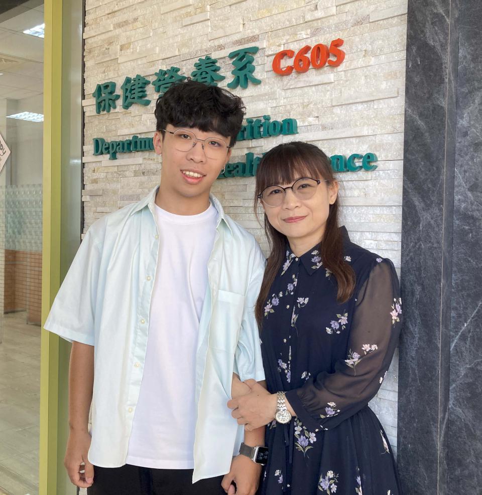 高市輔英科技大學保健營養系碩士生呂慧芳(圖一右)、二技江立紘(圖一左)母子檔,江立紘自許傳承衣缽,落實預防醫學,呂慧芳笑說,過去教兒子念書,現在仰賴他指導科技新知,跨世代學習增進親情。