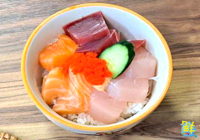 ▲三盛丼飯:內有鮪魚、旗魚、鮭魚刺身,三種魚類一次滿足!鮮味在舌尖繚繞,讓人欲罷不能!
