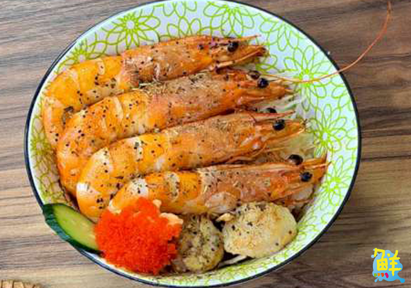 ▲奶油干貝蝦蝦丼:生食干貝炙燒至表面金黃,鎖住鮮甜肉汁,搭配彈牙鮮蝦鋪滿碗面,入口濃郁卻不膩口,是不少饕客一吃就愛上的人氣丼飯。