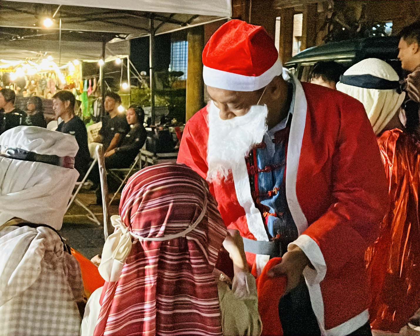 朱宏恩還化身聖誕老人分送糖果,並與大小朋友互動合影,家長表示,活動創造難忘回憶,感受原民一家親。圖/獅子鄉公所提供、文/高培德