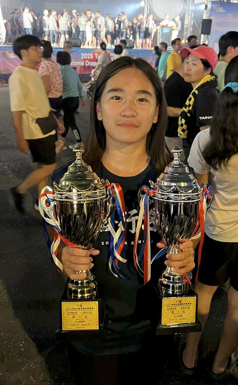 台南巿政府2025台南國際龍舟錦標賽5月27日至31日舉行,全台121隊、2791名選手同場競技,高市路竹區台鋼科技大學智慧科技應用系大一生葉庭卉等人組隊划出競技小龍舟金牌及大型龍舟公開女子組銀牌,同時也在高市運動發展局2025高雄端午嘉年華暨龍舟錦標賽包辦女子組小型民俗龍舟金牌及競技小龍舟賽銀牌,教練、休運系主任廖清海說,葉庭卉進入大學前接觸划船運動6年,課餘及每週返回母校台南海事練習精進技術,才能締造佳績。